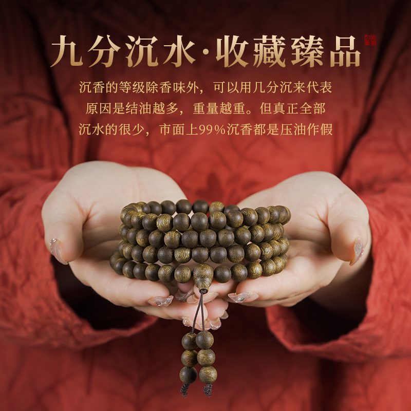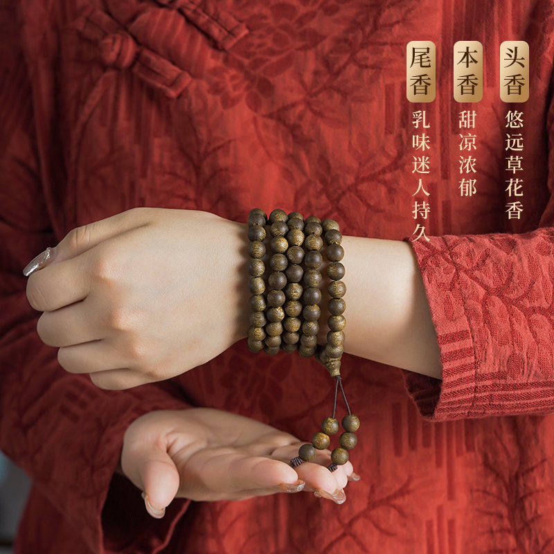 天然芽庄奇楠沉香手串九分沉满油黄棋楠高端文玩108颗手链女送礼 - 木香传旗舰店