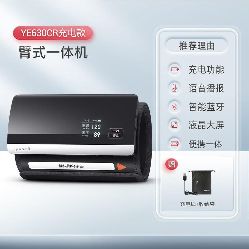 鱼跃充电蓝牙款医用电子仪上臂一体式电子计全自动家用量仪配件