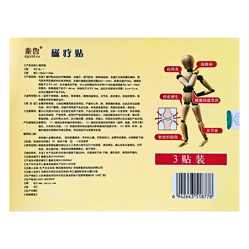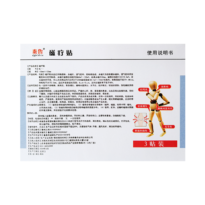 6盒装正品秦鲁磁疗贴远红外贴颈椎肩周腰椎间盘关节膝盖一盒3贴 - 喜乐家庭护理馆