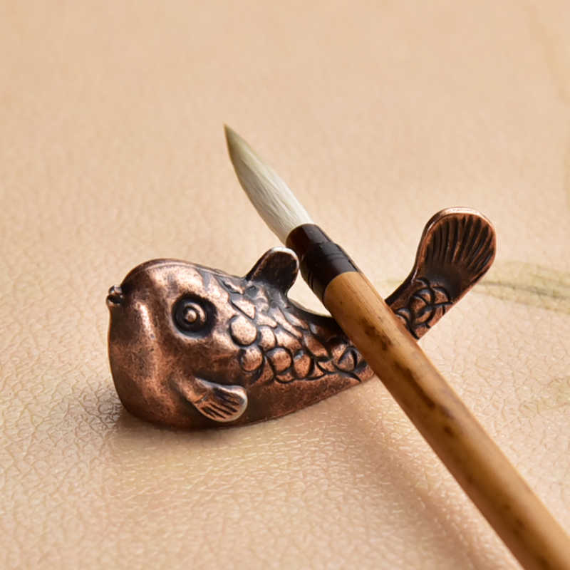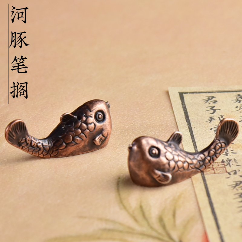 小巧河豚动物笔搁笔架文房书法绘画用品铸铁非黄铜小摆件文房用品 - 宝斋文房