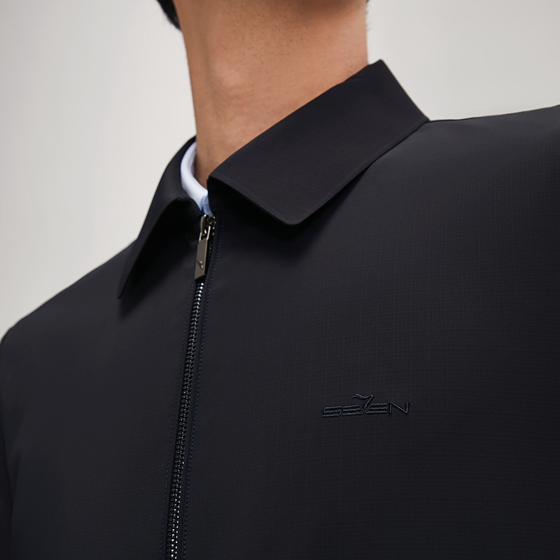 柒牌翻领夹克男秋冬新款暗格纹提花商务休闲行政通勤男士外套 - 柒牌官方旗舰店