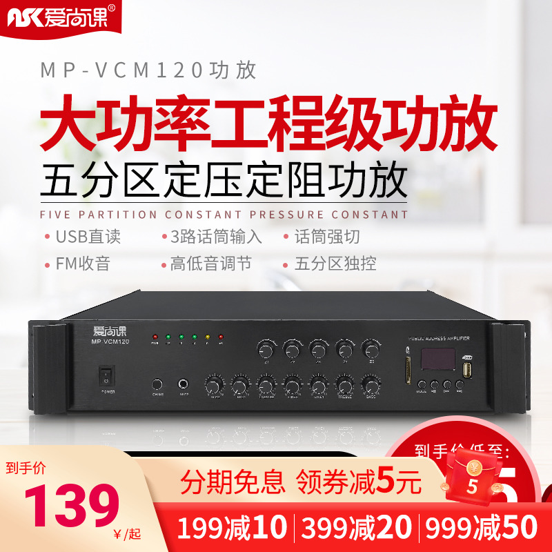 爱尚课 MP-VCM系列 大功率500W定压功放机五分区功放公共广播 - 恒荣设计馆2