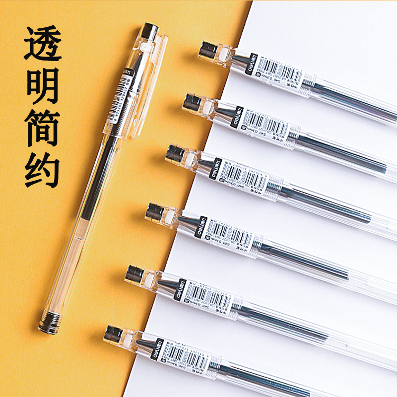12支/得力中性笔0.3细简约水笔黑色财务做账用碳素笔商务签字笔黑笔水性笔学生用考试专用速干笔文具用品 - 文航办公用品专营店