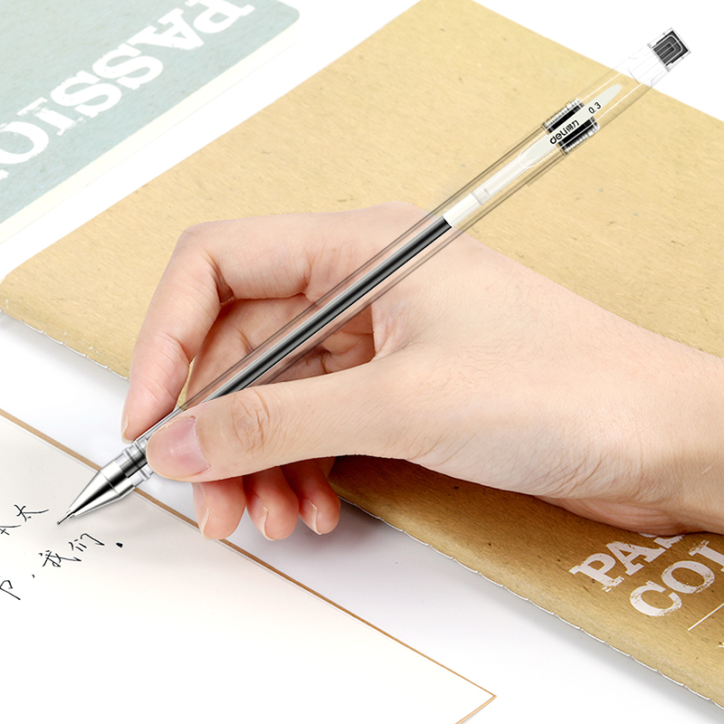 12支/得力中性笔0.3细简约水笔黑色财务做账用碳素笔商务签字笔黑笔水性笔学生用考试专用速干笔文具用品
