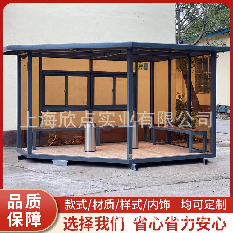 公共场所多功能玻璃房吸烟亭户外可移动吸烟室岗亭半敞开式茶水亭 - 钢宏机械