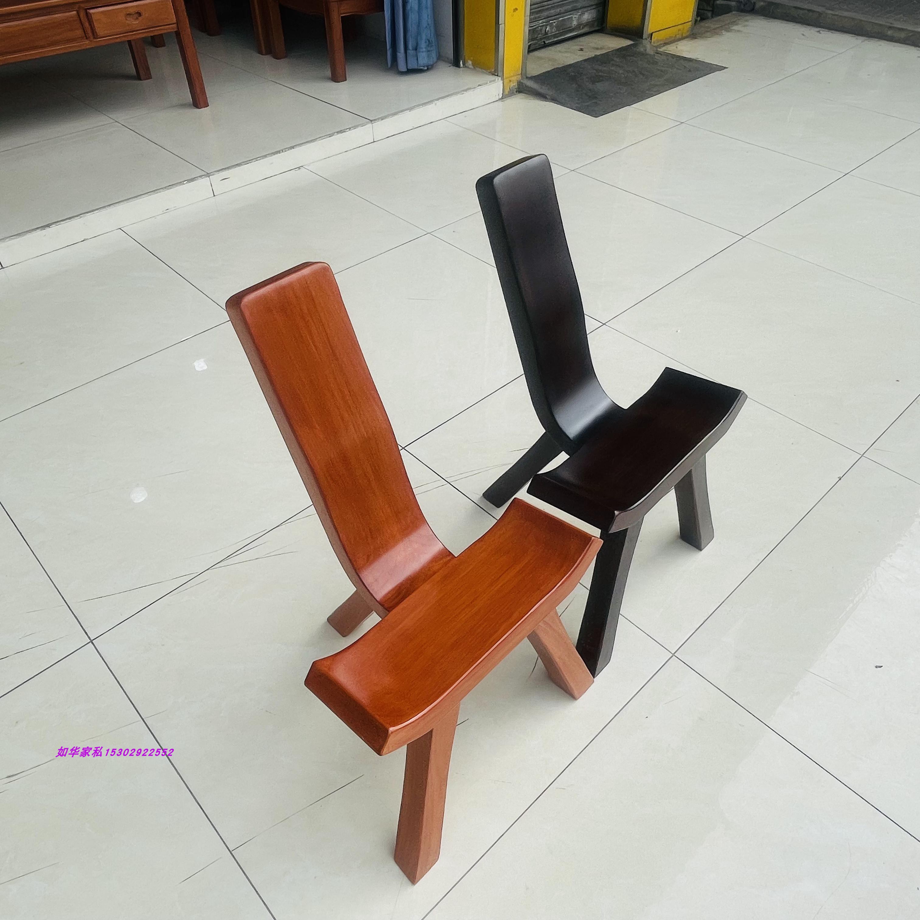 红木三脚椅全实木靠背椅花梨木家用换鞋椅实木钩鱼椅酸枝色厂直销 - 如 华 家 私