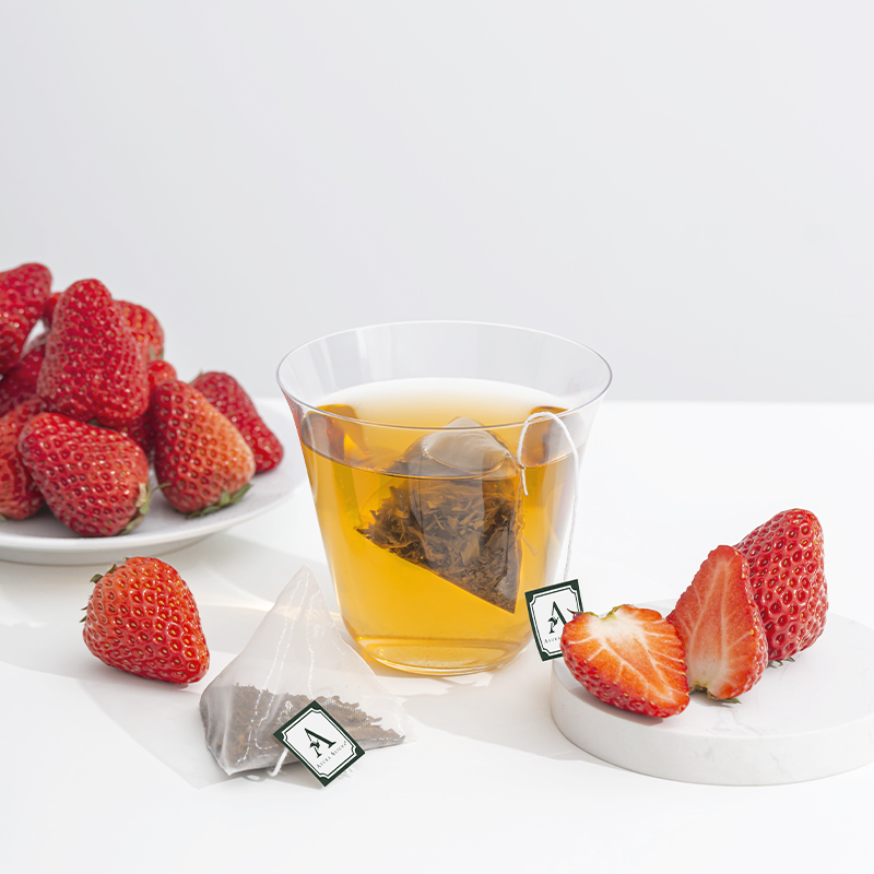 飞鸟制茶草莓焙茶茶包草莓焙烤绿茶晚安茶低咖啡因袋泡茶调味茶 - 飞鸟制茶