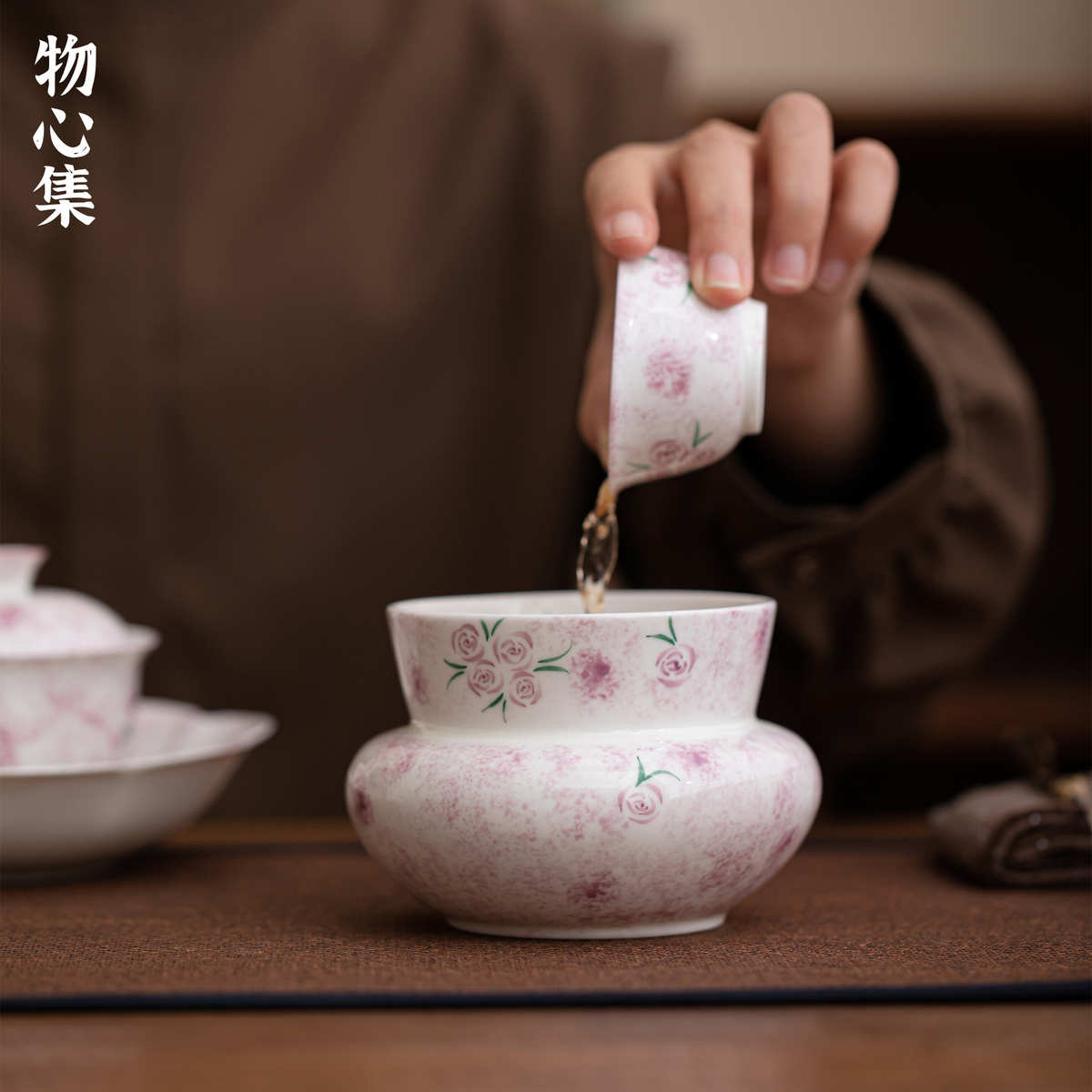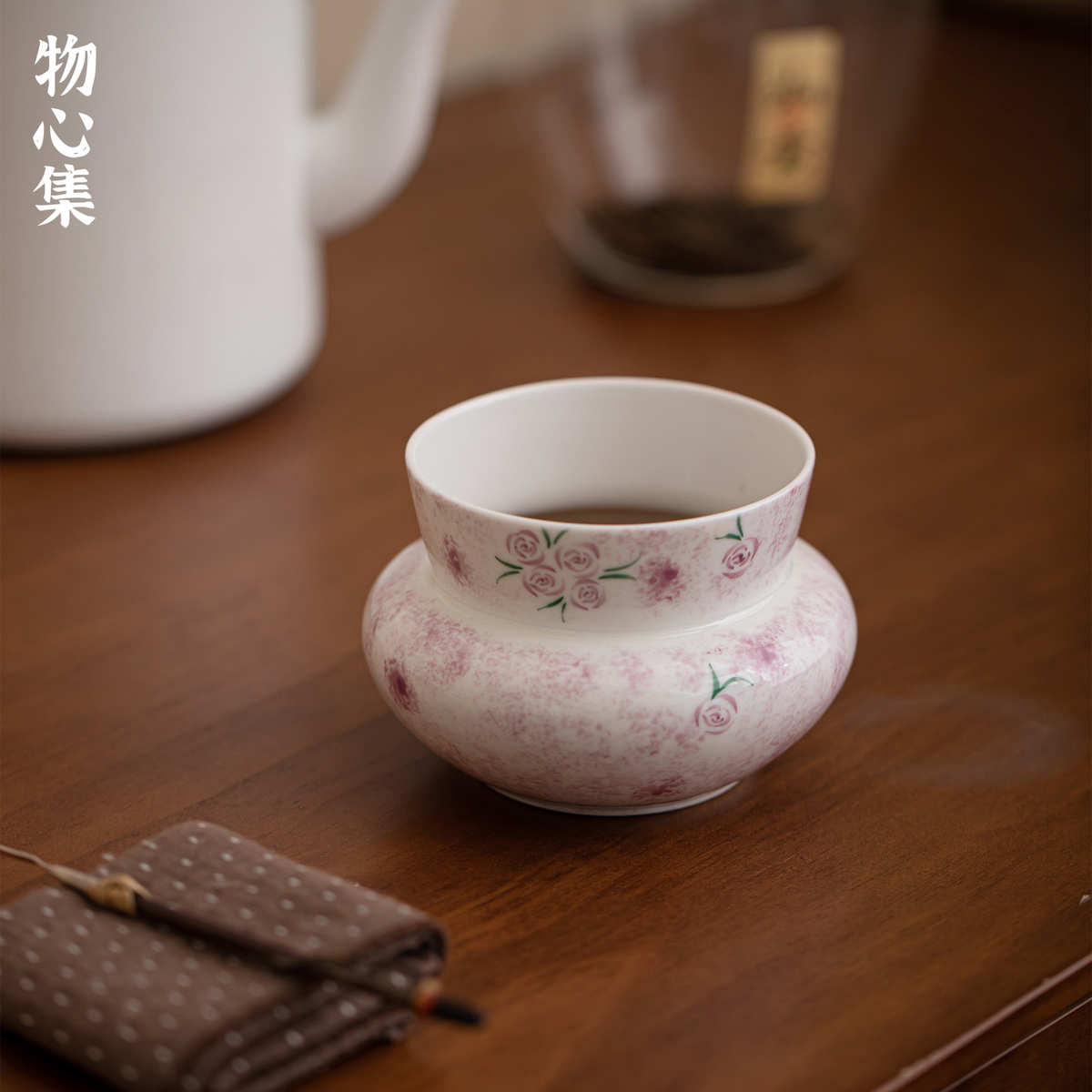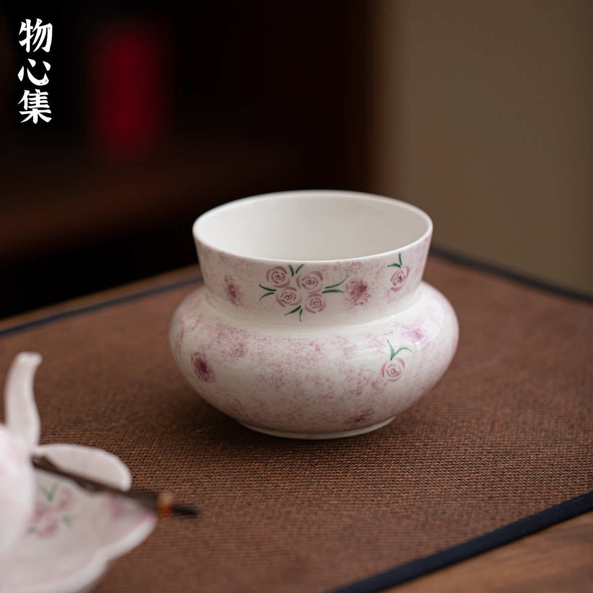 物心集手绘紫玫瑰建水功夫茶具茶桌废水缸桌面茶渍桶陶瓷水孟茶洗