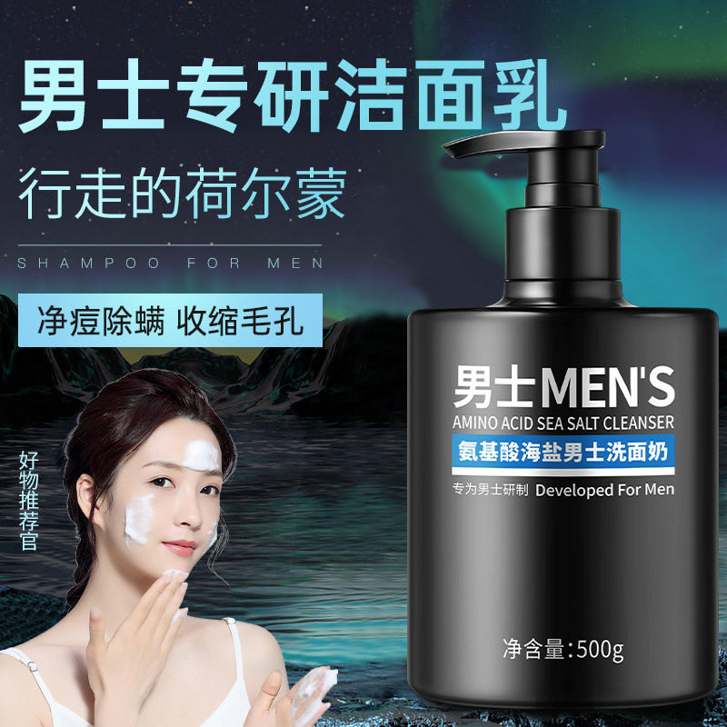 海盐洗面奶男士专业控油吸附黑头氨基酸洁面乳补水保湿官方旗舰店