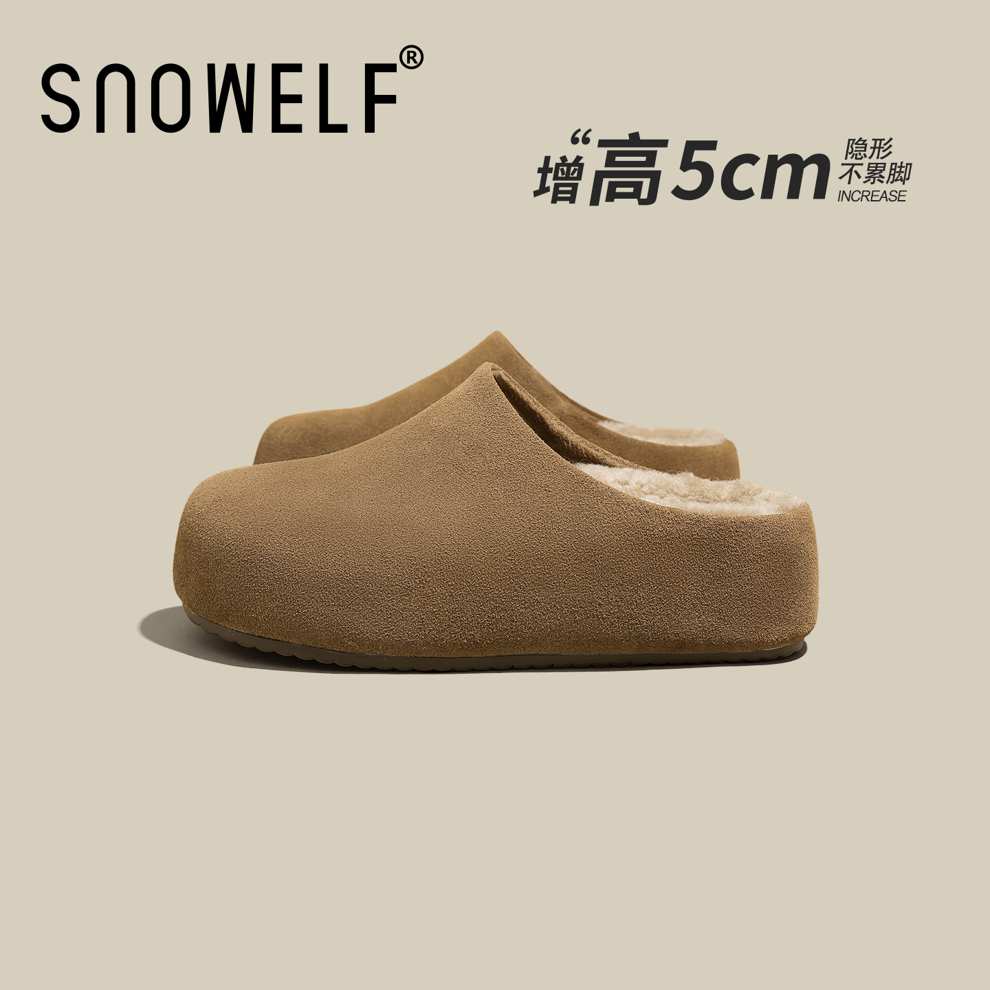 厚底勃肯鞋半拖棉鞋子女款2025新款冬季真皮百搭软底保暖加绒女鞋 - snowelf旗舰店