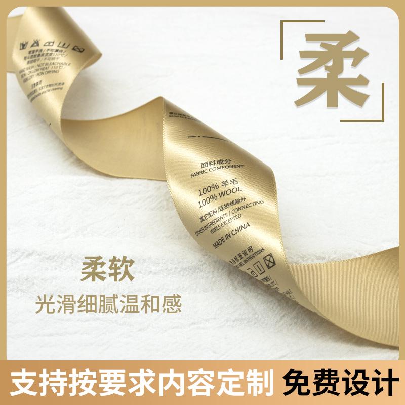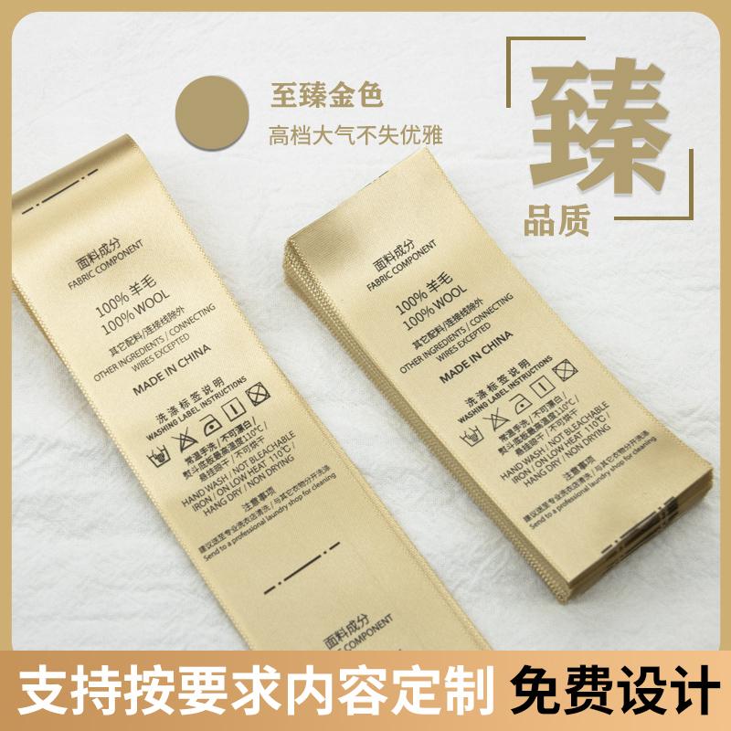 高档现货服装金色绸缎成分水洗标唛柔印布标签支持定制免费设计 - 伯乐辅料之家