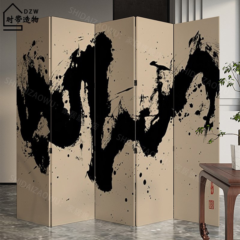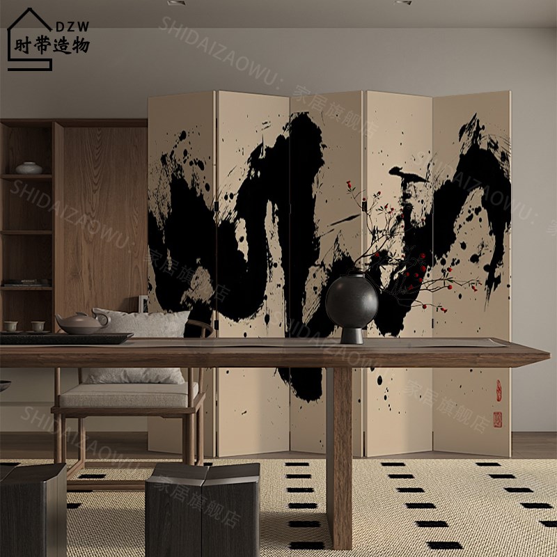 新中式水墨中国风屏风p折叠移动入户玄关客厅酒店隔断遮挡实木折 - tbbt123321242的小店98