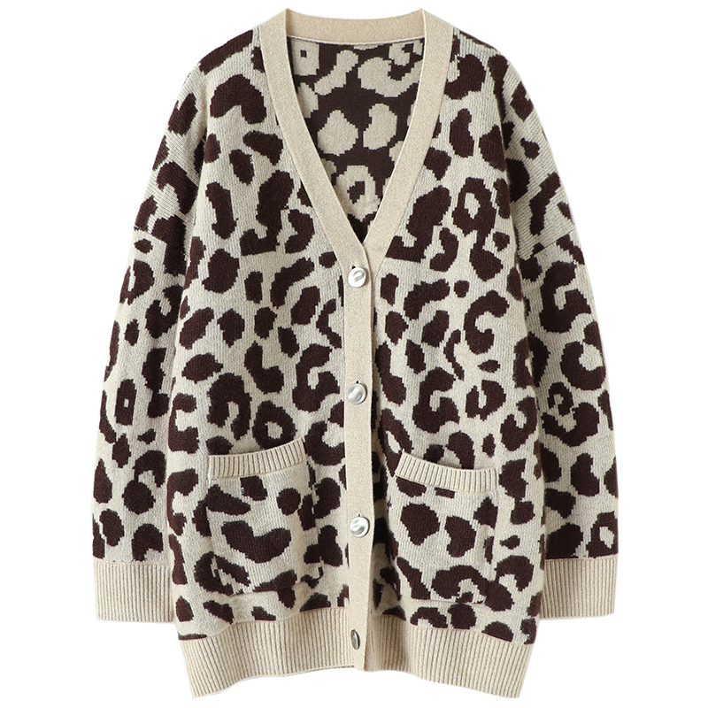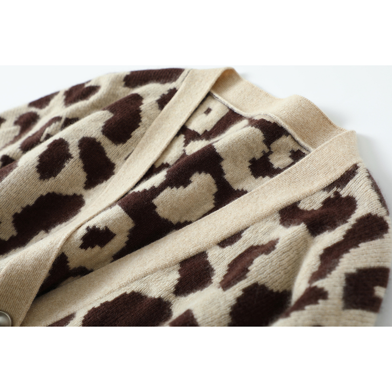 您的位置:他他商城  >  女装  >  满分出街!咖色豹纹廓形羊绒开衫女中长款宽松纯羊绒毛衣外套加厚