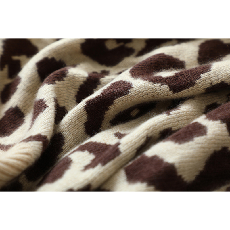 满分出街!咖色豹纹廓形羊绒开衫女中长款宽松纯羊绒毛衣外套加厚 - 启超官方旗舰店