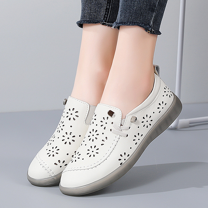 欧洲站女鞋真皮牛筋底妈妈鞋一脚蹬豆豆鞋老北京布鞋女春季软底软 - 伯瑞美棋店