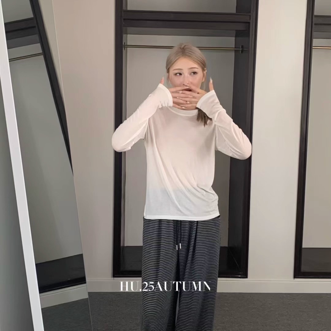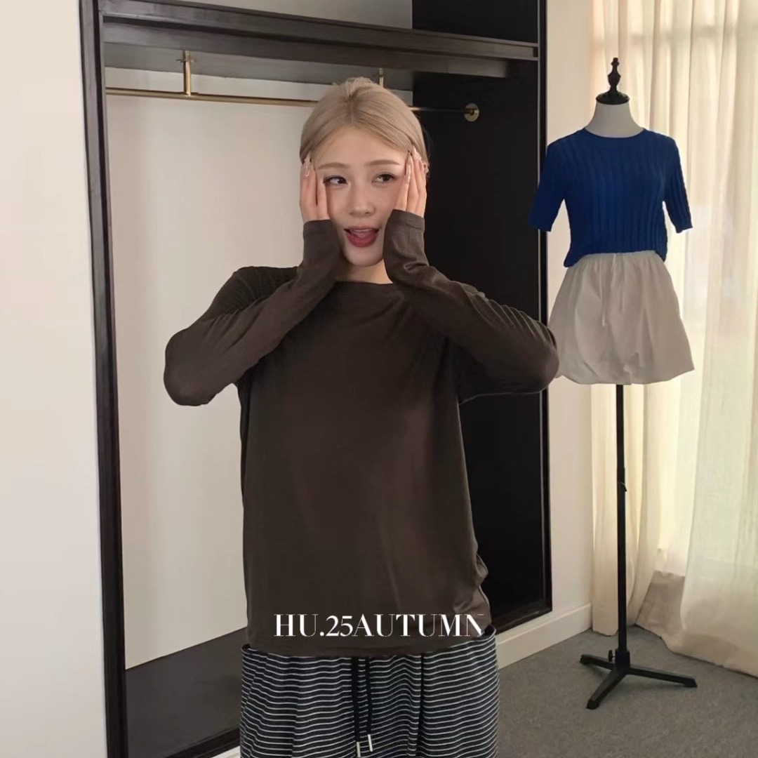 您的位置:他他商城  >  女装  >  HU韩版时尚百搭圆领薄款高弹力T恤2025早秋季新款舒适长袖上衣女