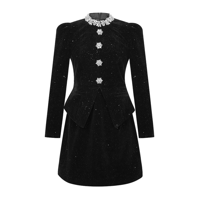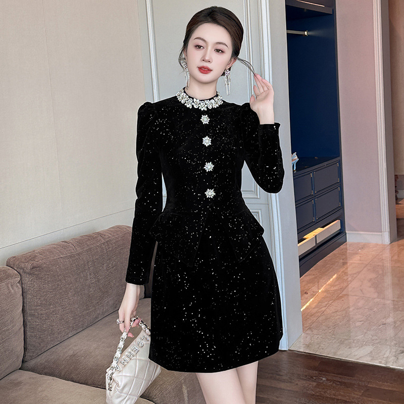 您的位置:他他商城  >   >  2025新款名媛气质丝绒连衣裙秋冬赫本风假两件收腰小黑裙高人气女