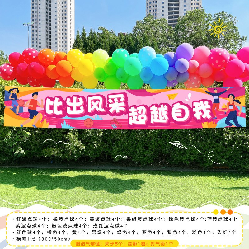 您的位置:他他商城  >   >  运动会装饰条幅运动会q氛围道具装饰场景布置小学学校入场创意气
