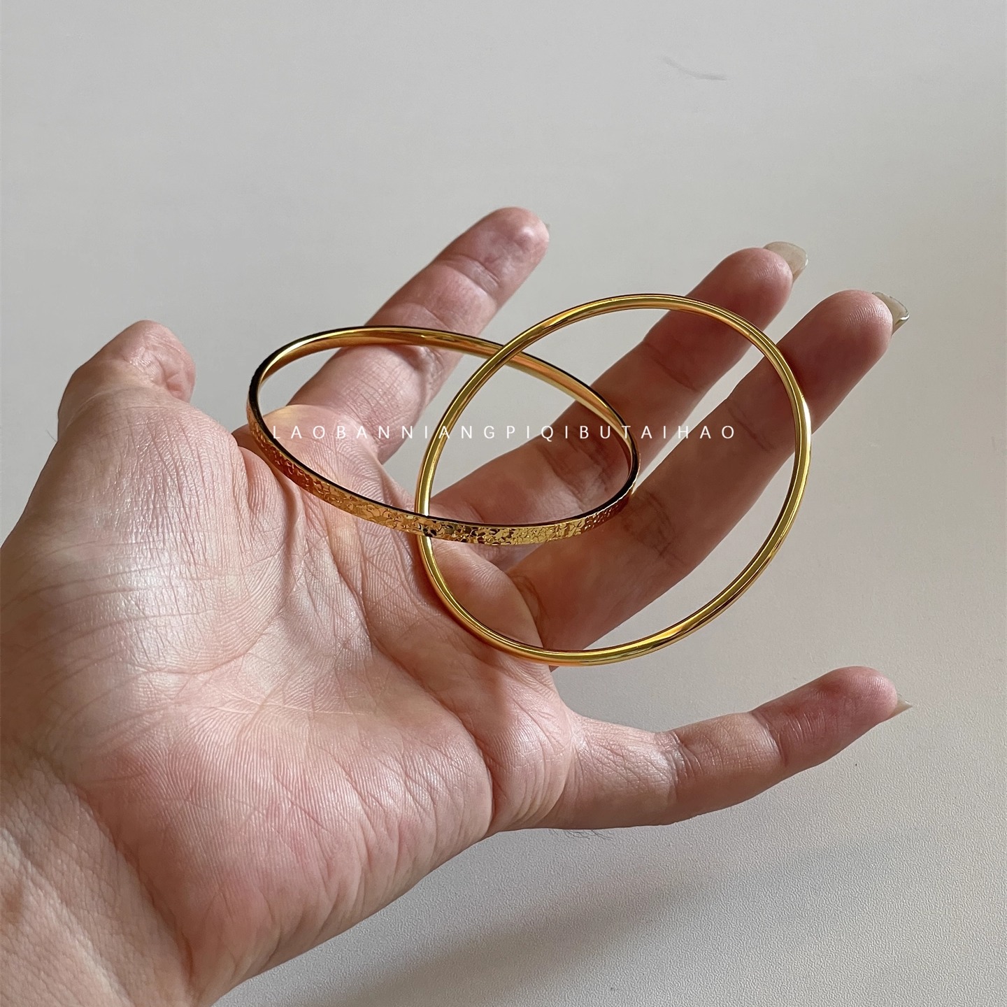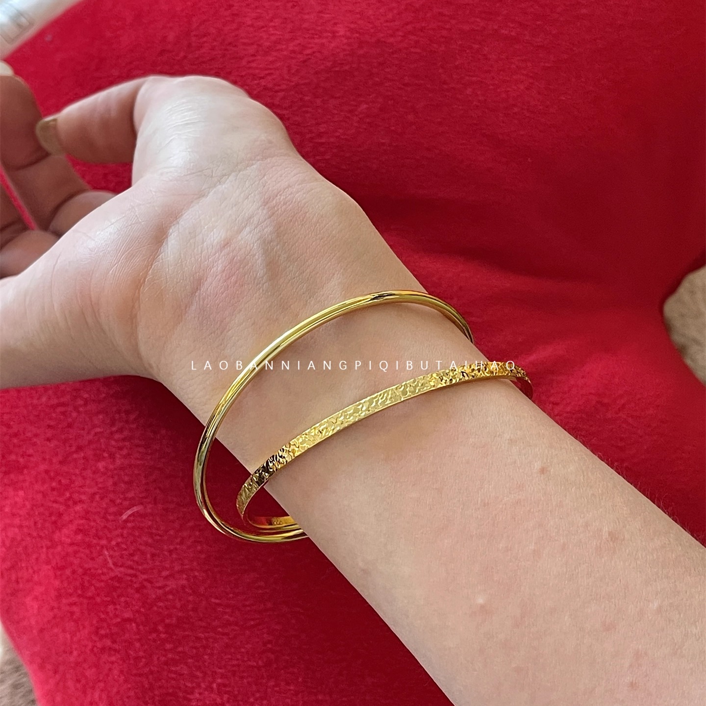 爆款碎碎冰!超好看双环手镯网红同款碎冰纹百搭双圈手环仿金手饰 - 老板娘脾气不太好