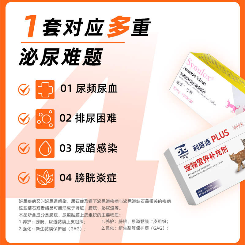 合宠利尿通猫咪尿闭药泌尿系统泌尿通尿频尿血尿路感染速猫诺消炎