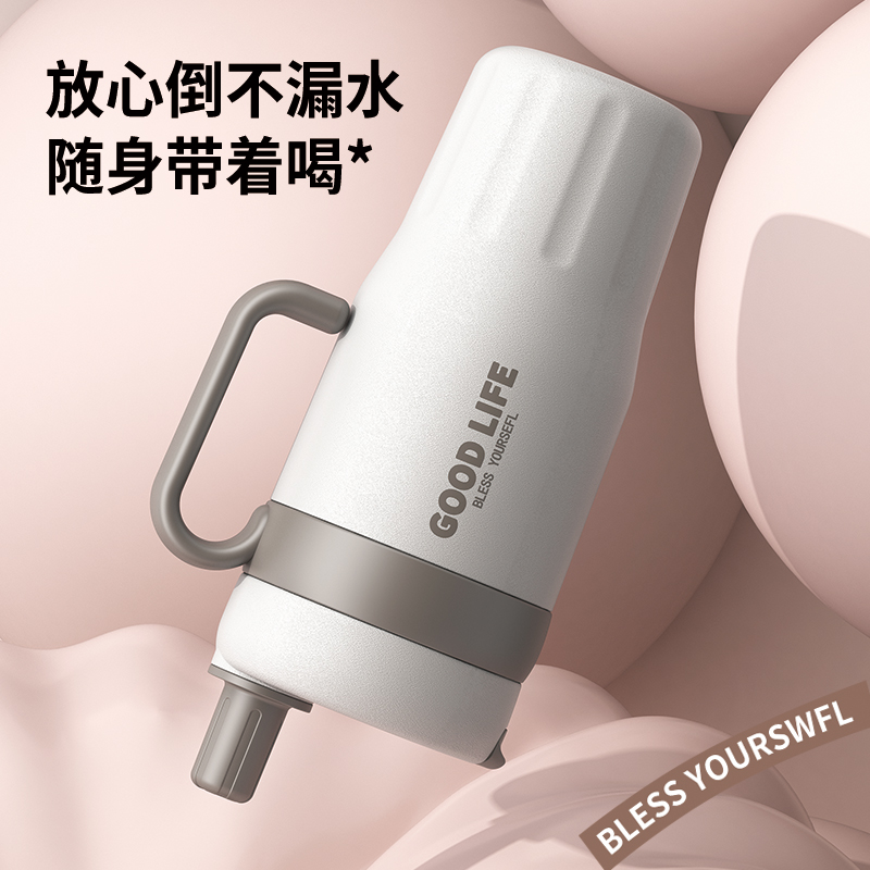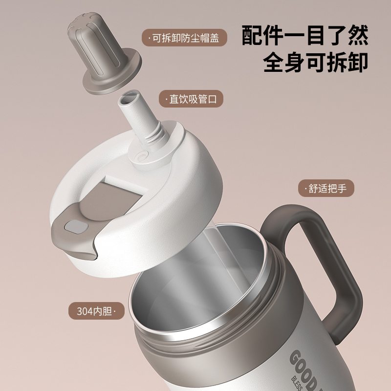 吸管保温杯女士高颜值新款大容量男款不锈钢咖啡水杯车载冰霸杯子 - 峥然日用百货