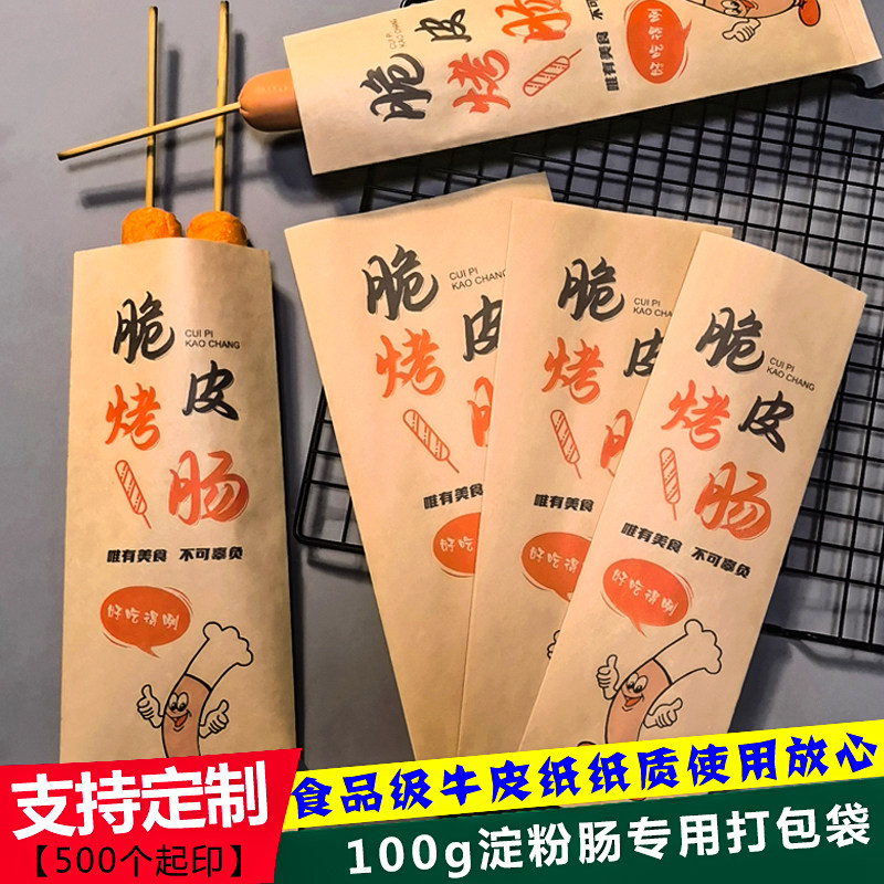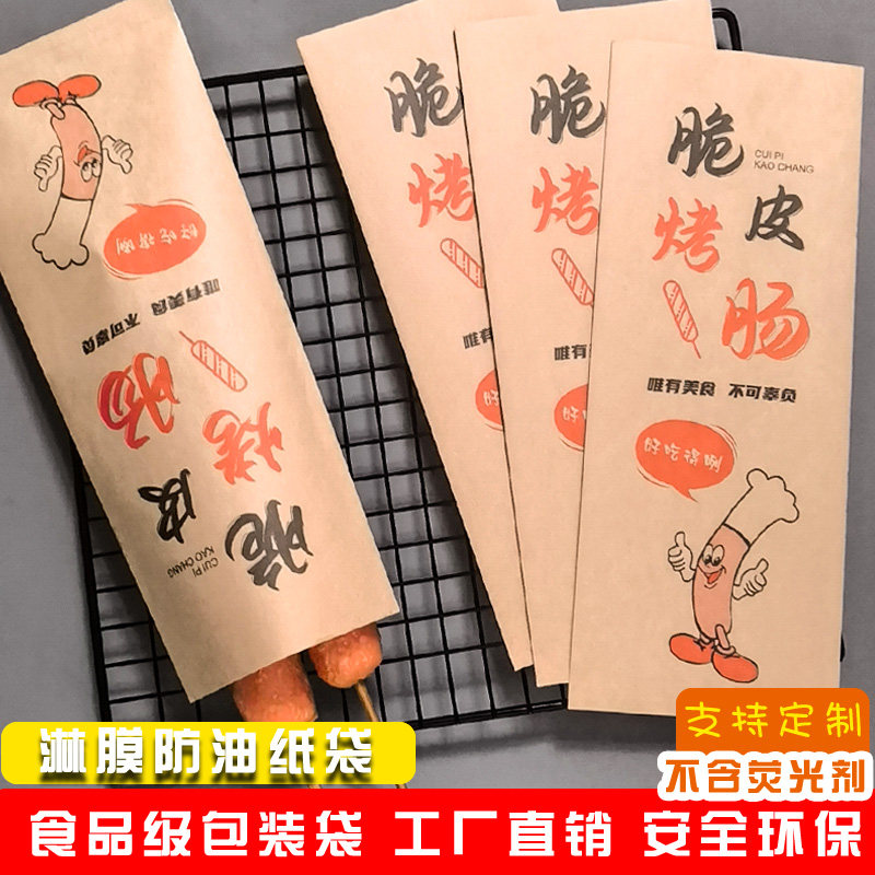 网红黄金脆皮烤肠纸袋一次性淀粉肠专用防油纸袋牛皮纸外卖包装袋 - 茗贺纸塑包装