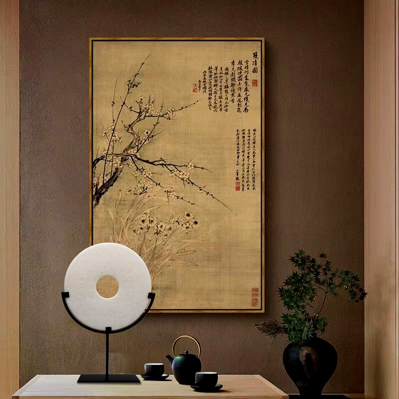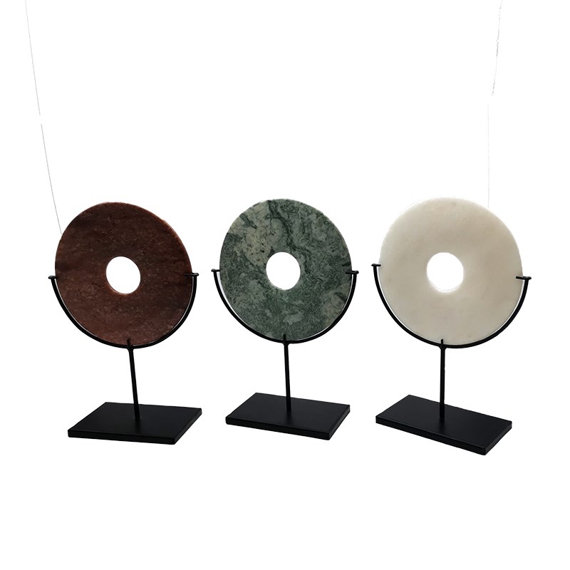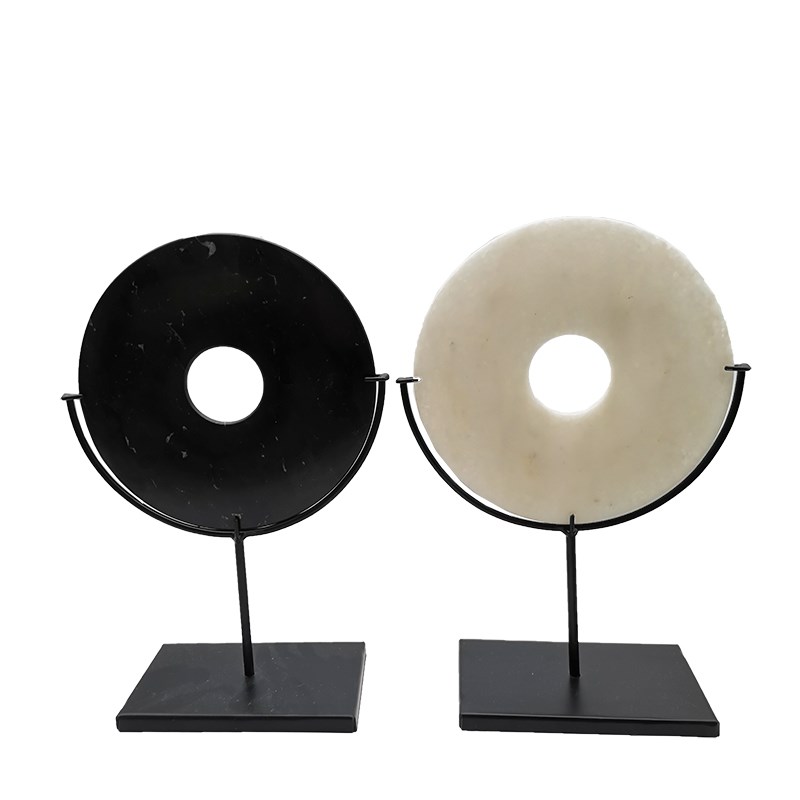 新中式禅意天然石材客厅酒柜玄关软售楼处酒店样板间白色玉璧摆件 - 向婵企店