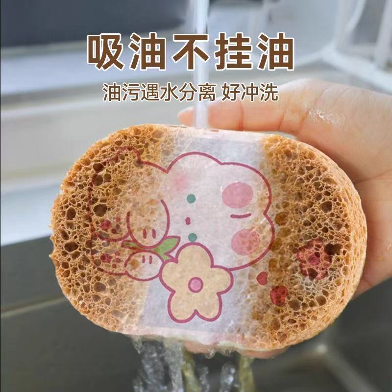 木浆棉海绵擦压缩百洁布海绵抹布洗碗布不沾油厨房专用锅刷魔力擦 - 水果糖日用超市