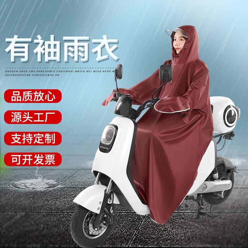 牛津带袖电动车雨衣 电瓶车长款连体骑行雨衣 女款全身防暴雨雨披 - 集博旗舰店