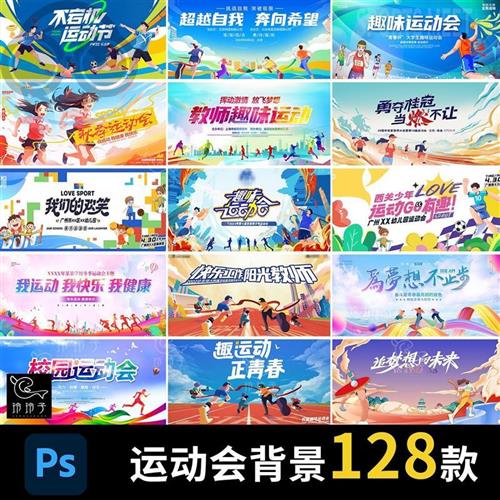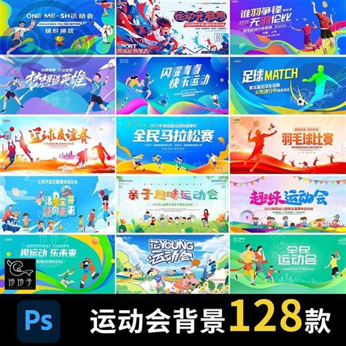 潮流体育竞技比e赛学校园运动会背景展板主视觉kv模板PSD设计素材 - 狄恒服饰商贸店