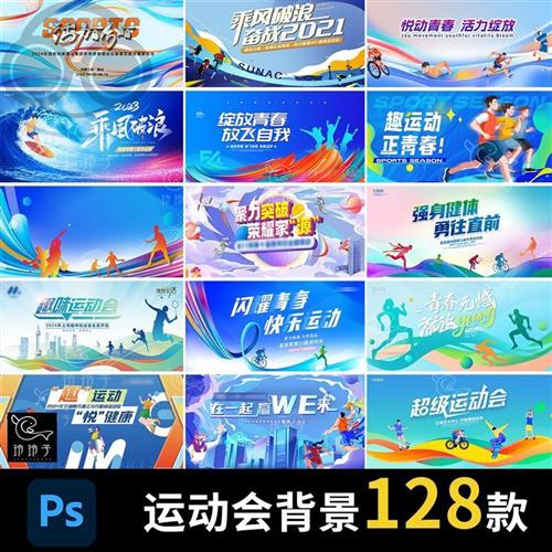 潮流体育竞技比e赛学校园运动会背景展板主视觉kv模板PSD设计素材