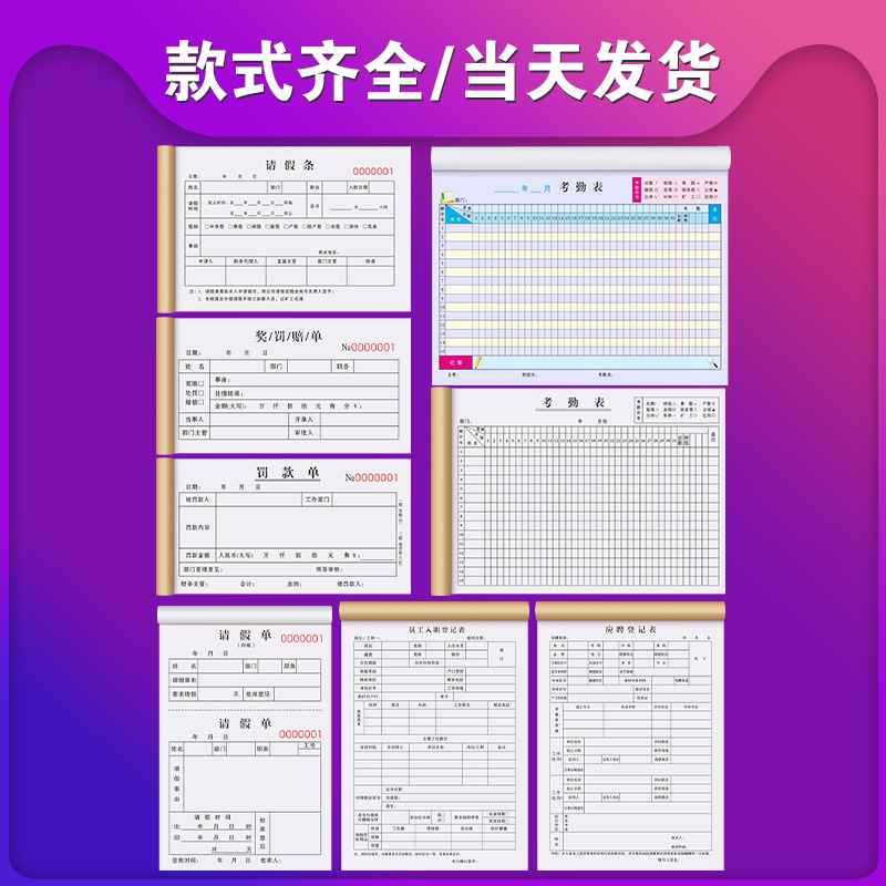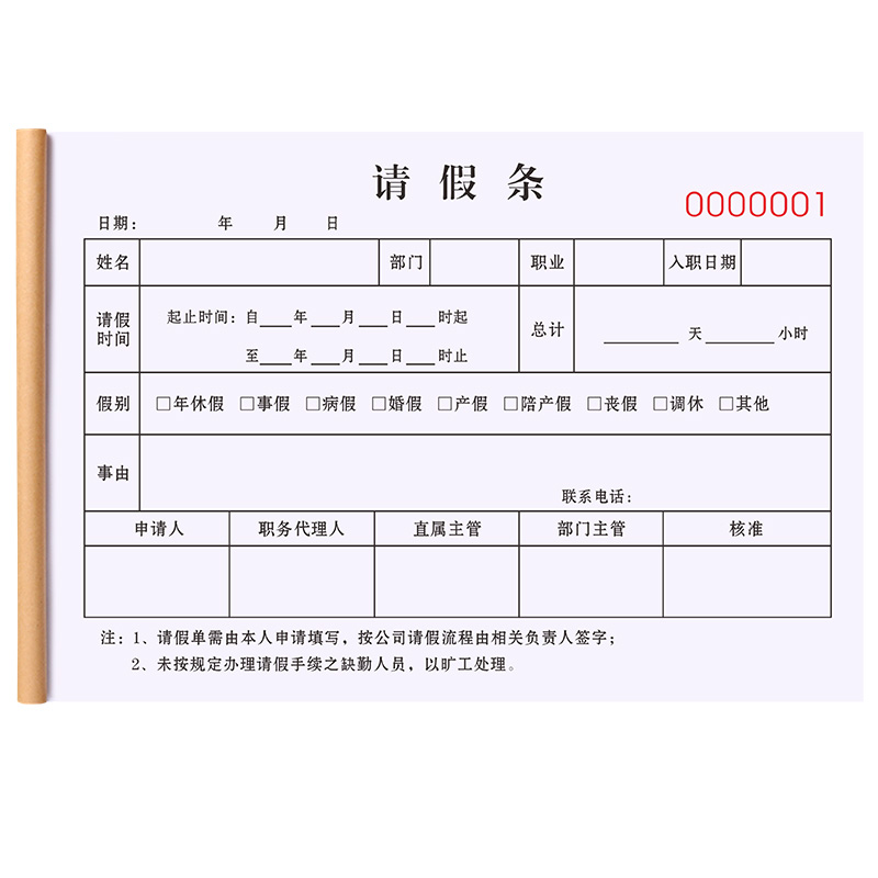 假条定制工地考勤调休表学校病休单学生出校通知单公司外出申请事 - 瑞麟优品
