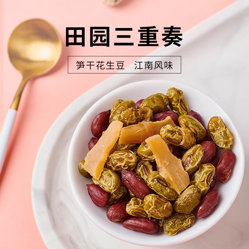 您的位置:他他商城  >   >  来伊份笋干花生豆500g天目山特产红皮花生米什锦豆小包装休闲零食