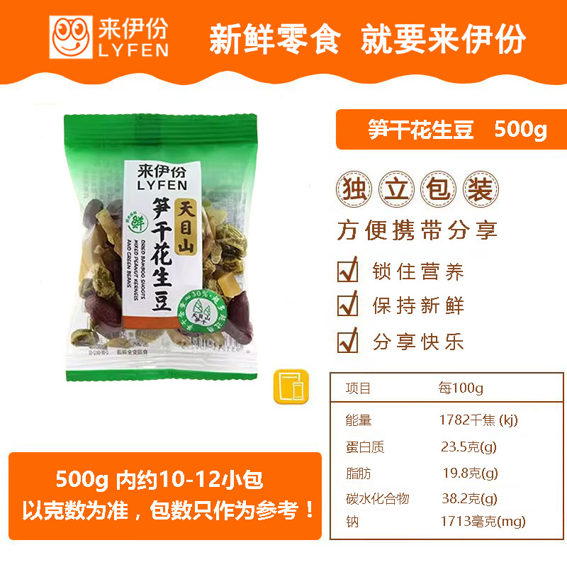 来伊份笋干花生豆500g天目山特产红皮花生米什锦豆小包装休闲零食 - 来伊份量贩零食店
