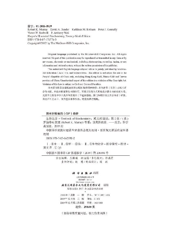 生物化学 英文改编版 第2版 中国科学院教材建设专家委员会规划教材 医学英文原版改编双语教材 9787030629302 科学出版社 - 金卫图书音像专营店