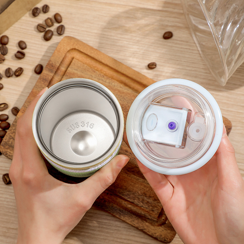 欧洲站网红高颜值316保温杯女士吸管双饮杯ins简约水杯新潮随行咖