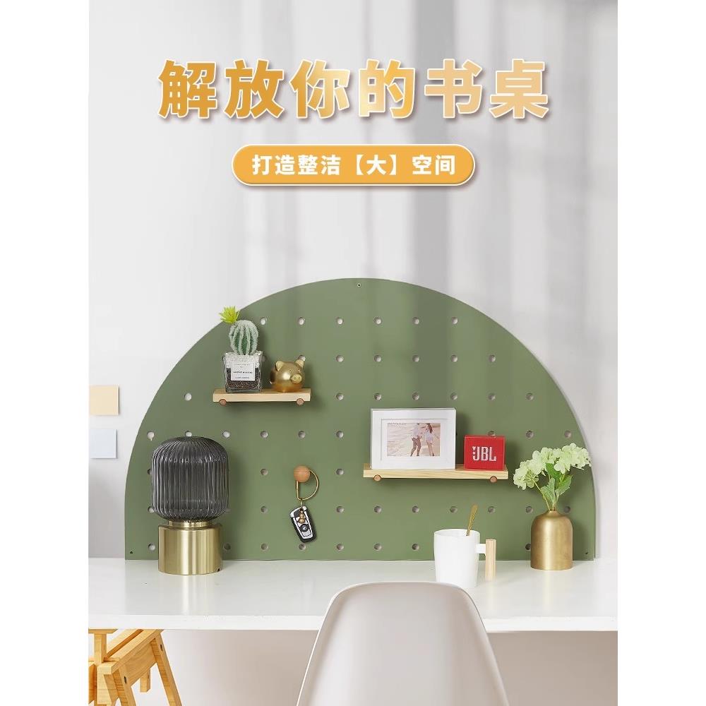 半圆形实木洞洞板桌面挂板书架 定制书房卧室床头书桌挂墙置物架
