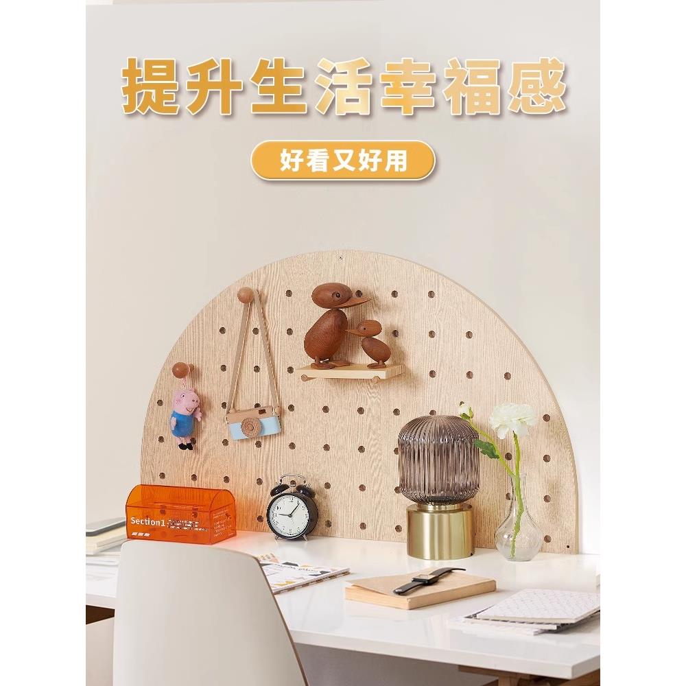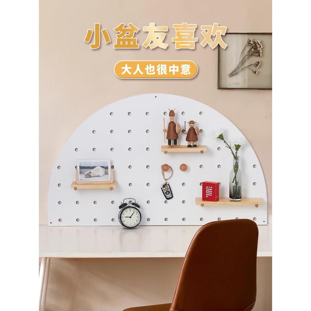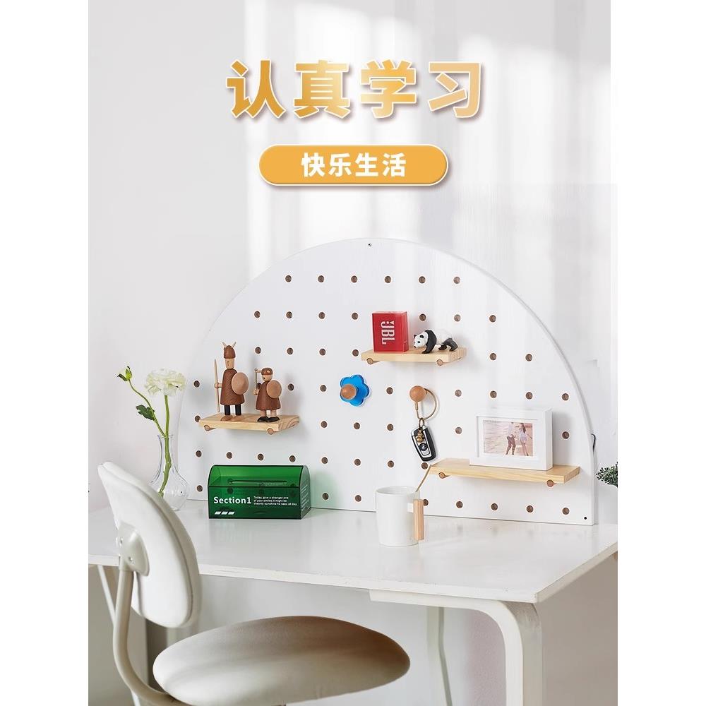 半圆形实木洞洞板桌面挂板书架 定制书房卧室床头书桌挂墙置物架 - 弘百货工厂店