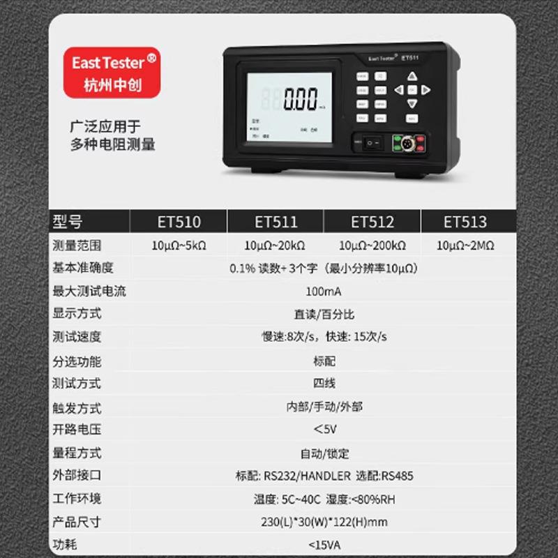 ET510/512直流低电阻测试仪器毫欧表微欧计欧姆表ET513/511