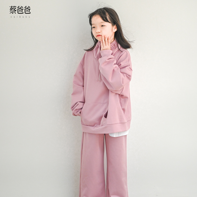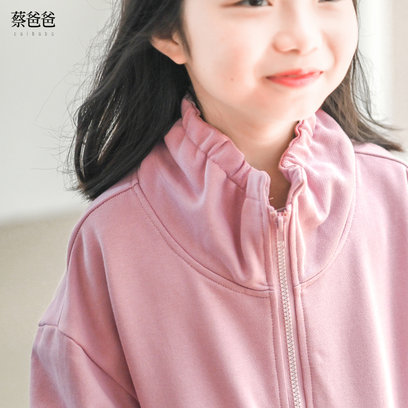 蔡爸爸童装拉链立领卫衣2025秋冬装女童学生休闲淡粉卫衣套装1322 - 蔡爸爸 原创设计童装