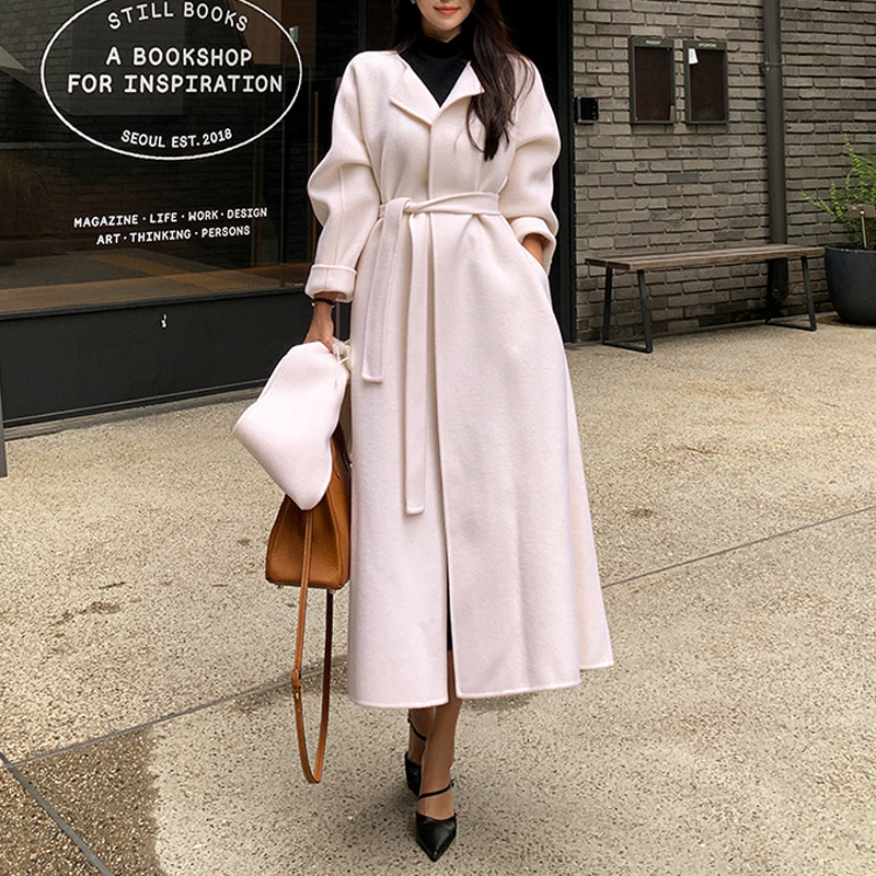 尺寸已更新 韩国chic 法式气质围巾长款大衣呢子外套女 - 滢宝时尚潮流女装