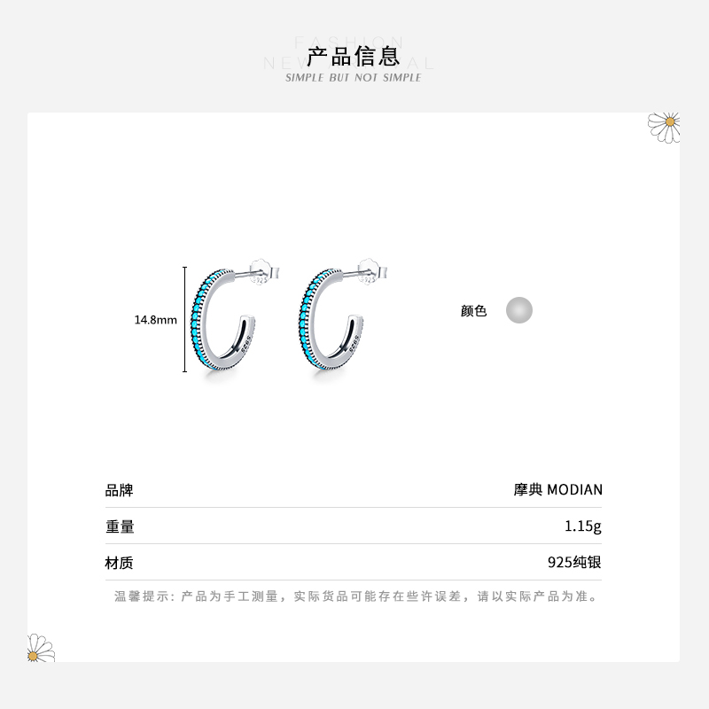 您的位置:他他商城  >  配饰  >  MODIAN摩典S925纯银复古气质半圆合成绿松石耳环女小众设计感耳环