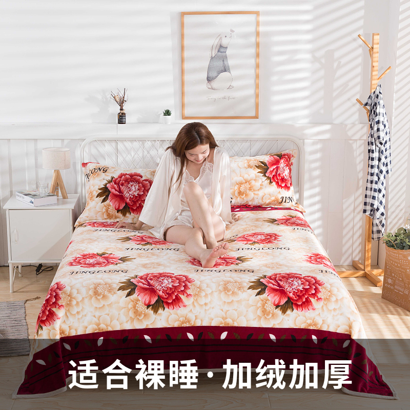 加绒床单单件冬季法兰绒加厚牛奶毛绒盖毯学生单人宿舍珊瑚绒被单