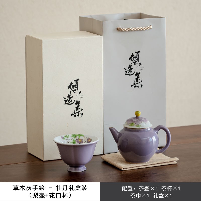 您的位置:他他商城  >   >  草木灰手绘紫釉一壶一杯便捷套装陶瓷家用个人杯主人杯过滤壶