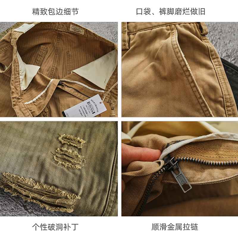 您的位置:他他商城  >  男装  >  日系重磅工装贴布补丁工装裤质感鱼骨纹梭织宽松直筒阔型休闲裤男