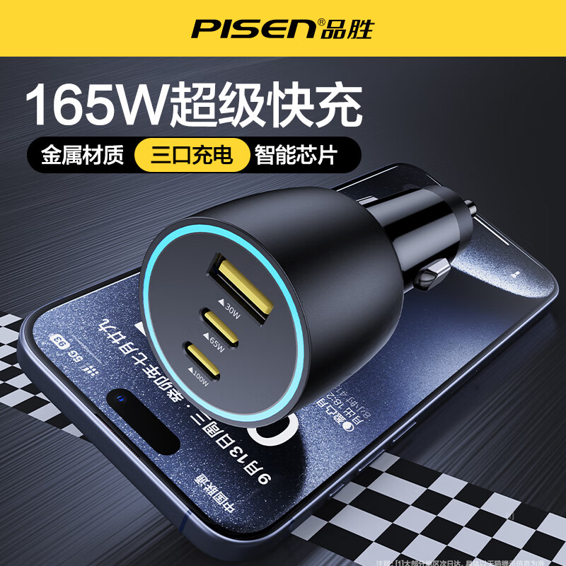 品胜165W车载充电器一拖三汽车点烟转换插头适用苹果16快充PD车充 - 卓选数码专营店