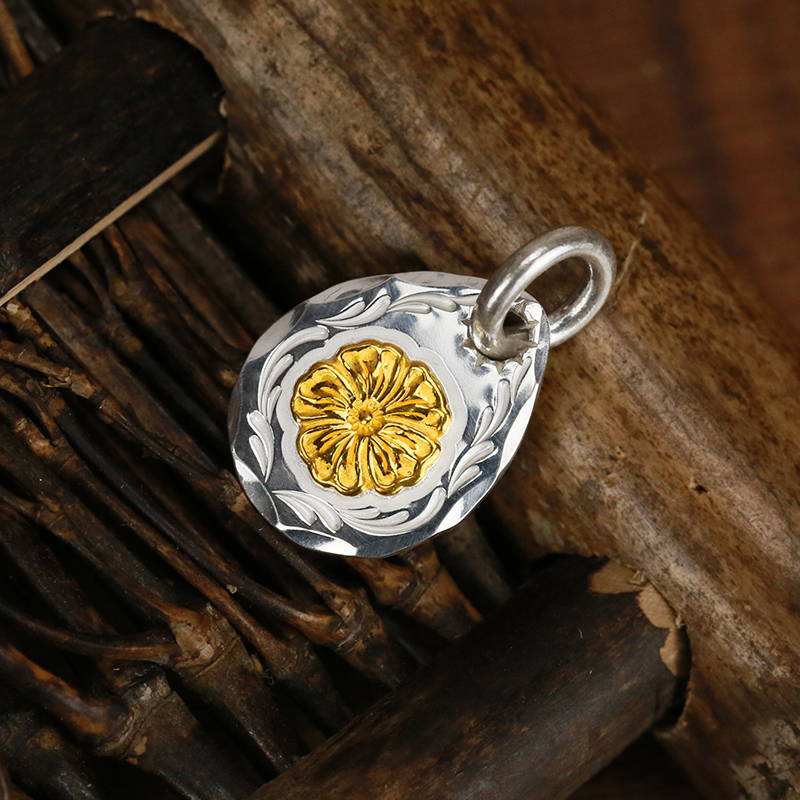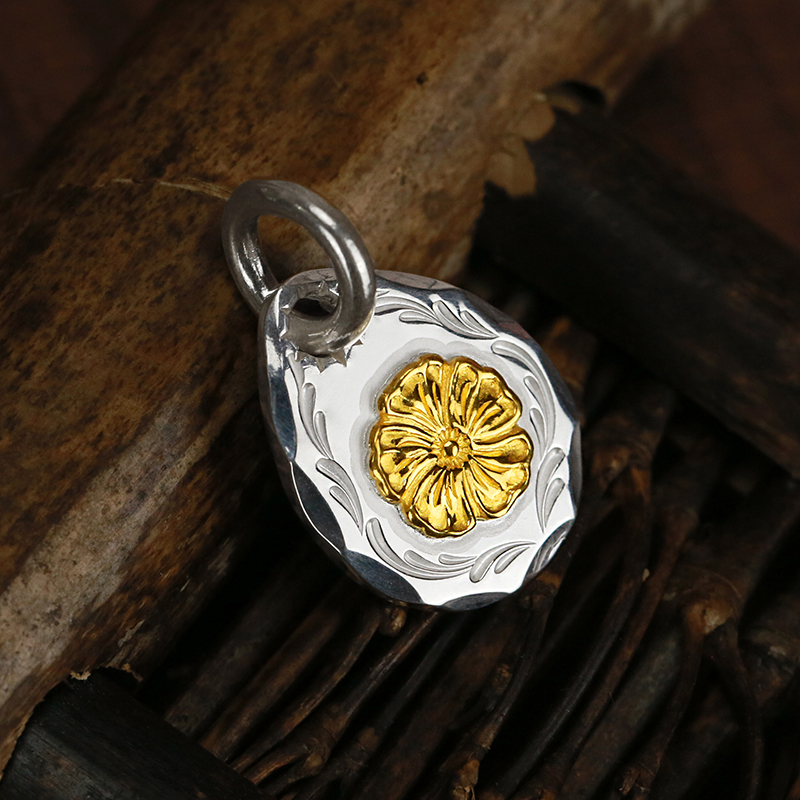 牛钝精工 kenkikuchi菊地健蔷薇花印台唐草敲边小银饼吊坠手工 - 牛钝精工