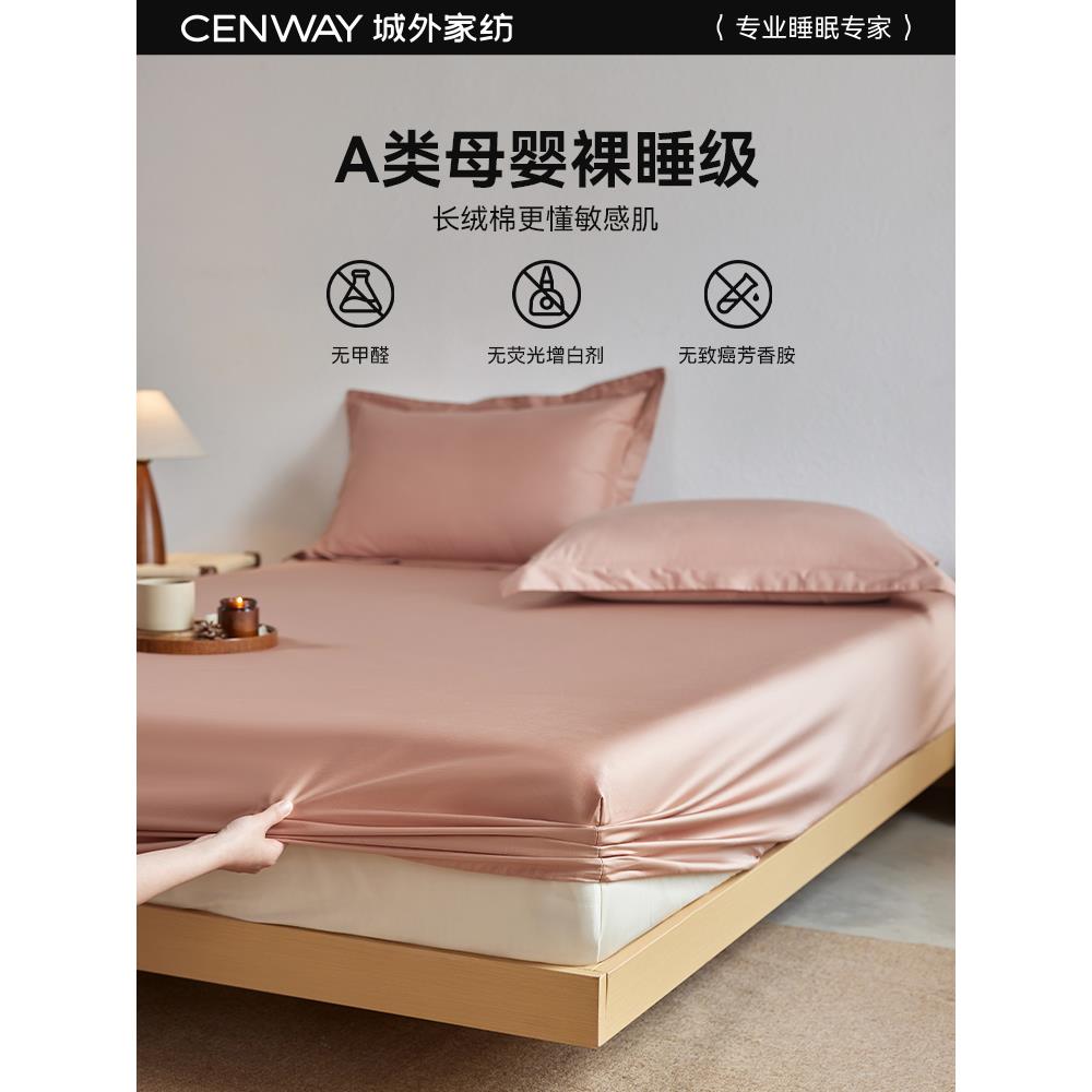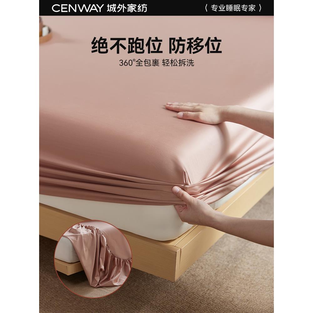 城外高端100支长绒棉床笠单件贡缎全棉纯色纯棉床单床垫保护罩套