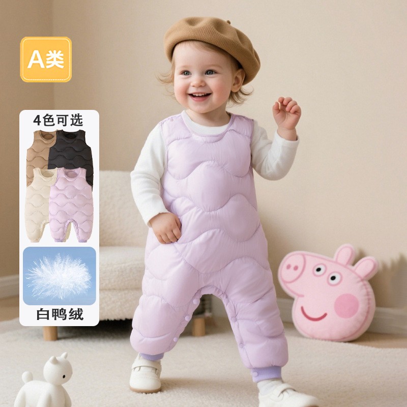 男童女童背带羽绒裤2025冬季新款宝宝保暖三防背带裤可开裆长裤潮 - 巴拉balaa童装折扣小店