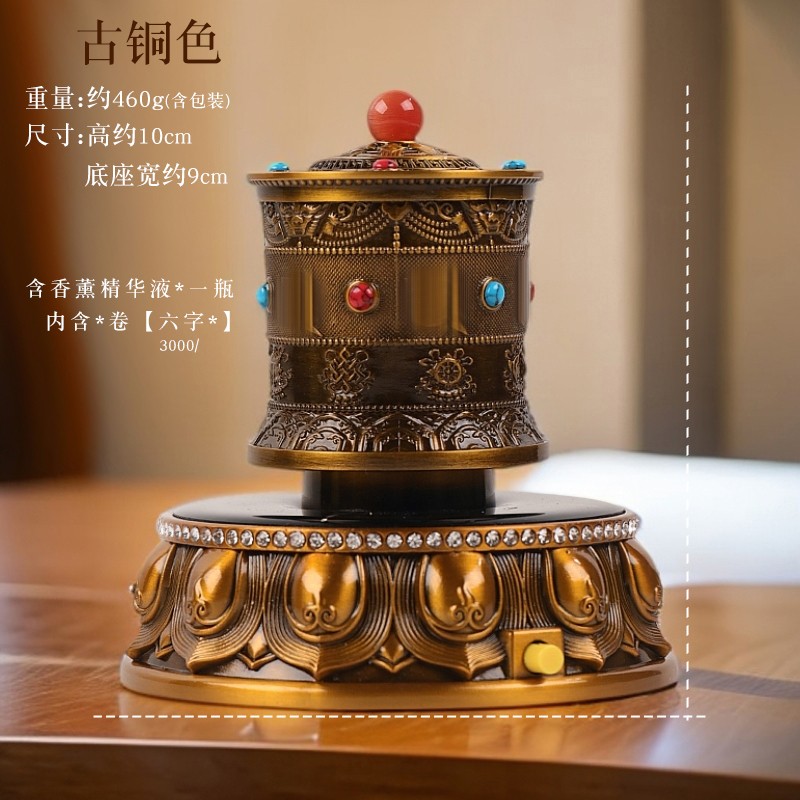 藏式家用合金电动转筒六字八吉祥车载香薰太阳能静音汽车装饰摆件